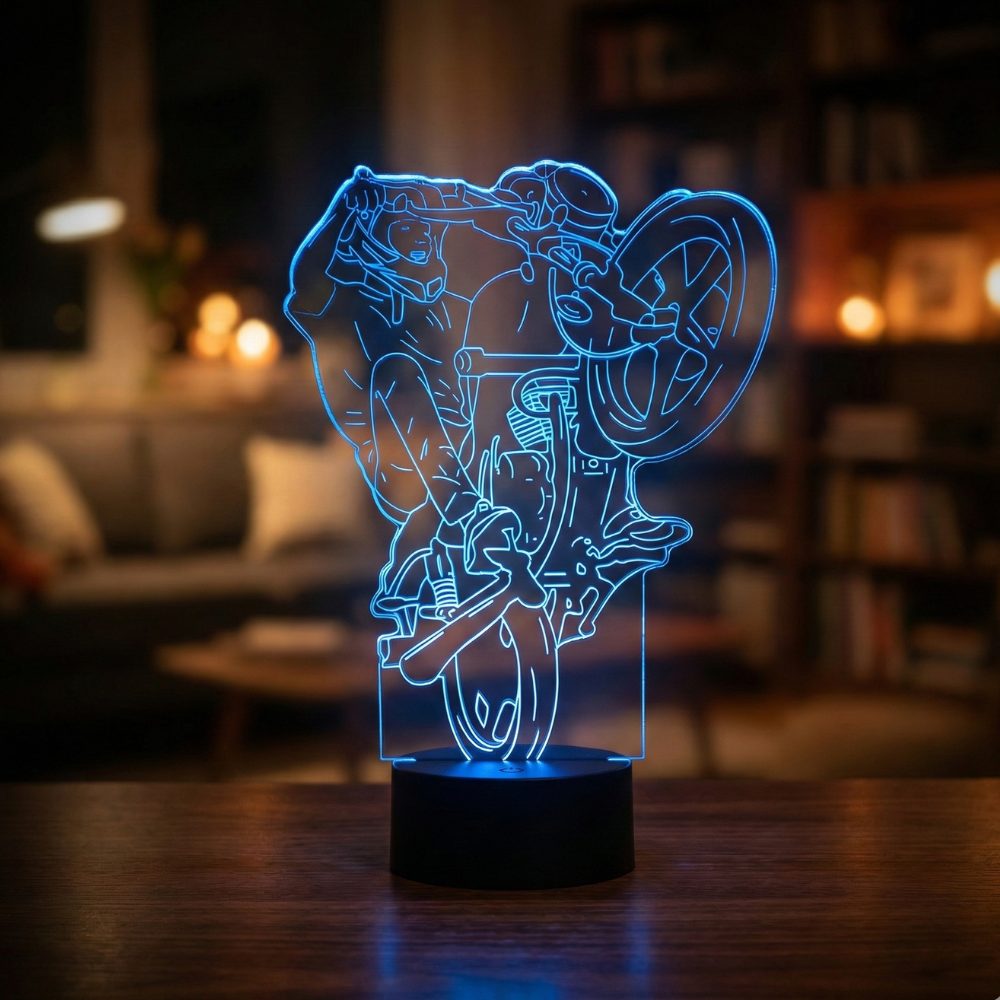 🏍️ ¡Adrenalina pura hecha luz! Capturamos la acción exacta de tu mejor pirueta o acrobacia en moto respetando cada detalle del chasis.