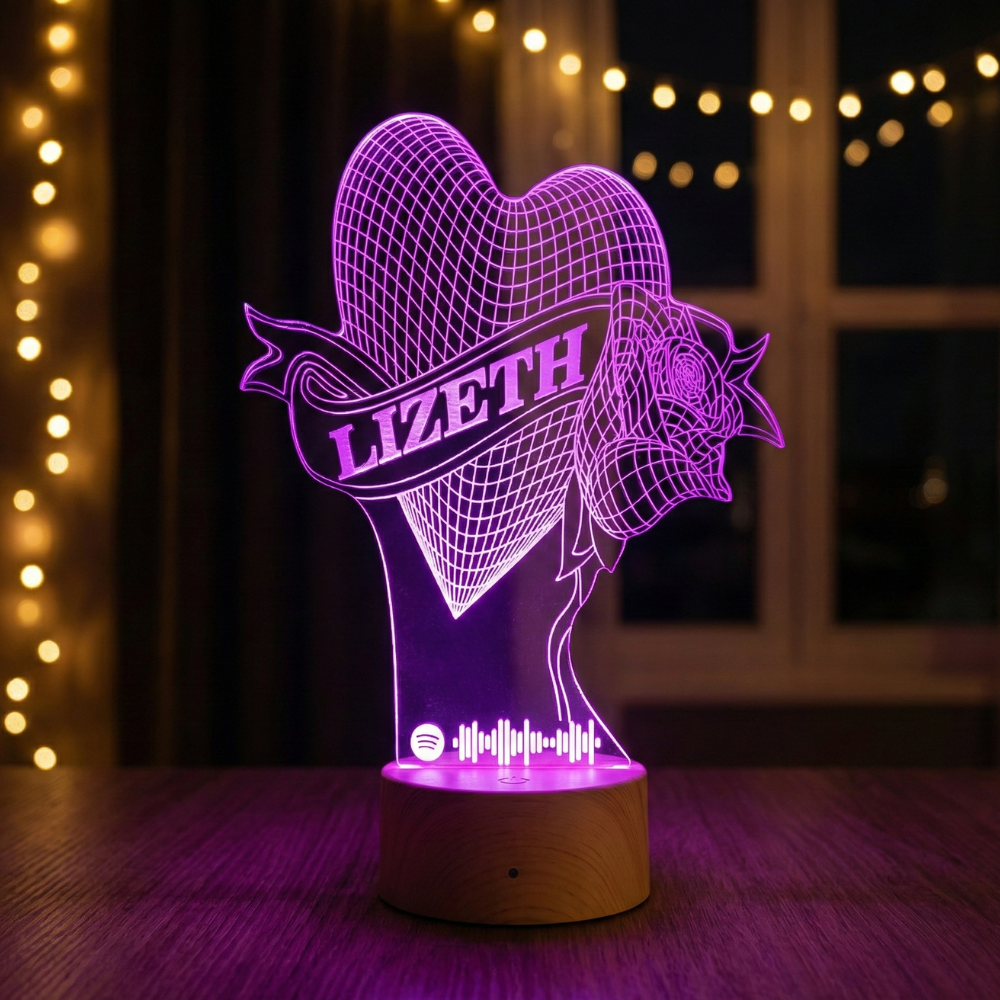 🌹 ¡El detalle más romántico! Un hermoso corazón entrelazado con una rosa, un nombre personalizado y el código de su canción favorita en Spotify.